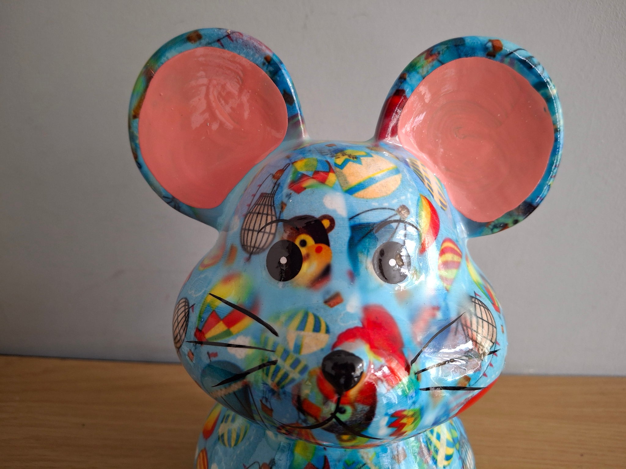 BLUE BALLOON Design Martha Mouse Pomme Pidou Piggy Bank with Pomme Pidou gift box