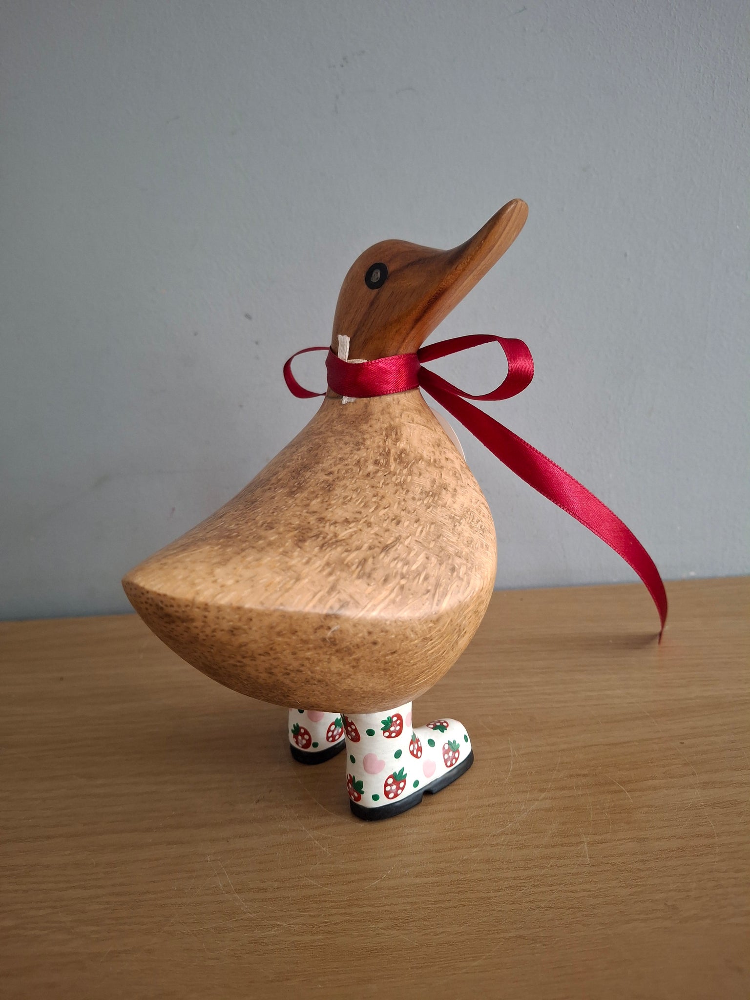 DCUK Wooden Ducky wearing Wild Strawberry Welly Boots