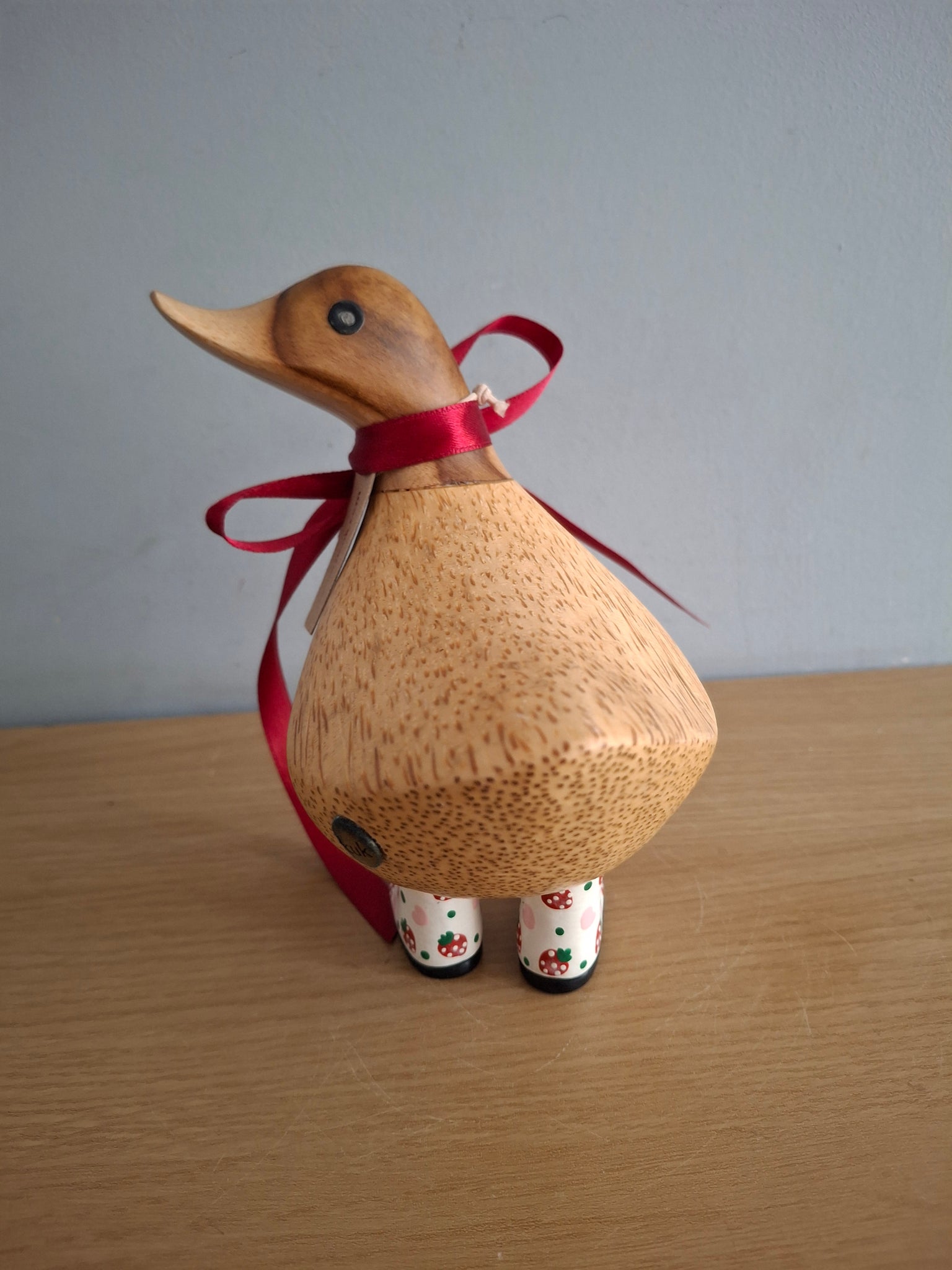 DCUK Wooden Ducky wearing Wild Strawberry Welly Boots