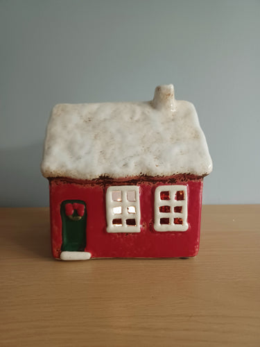 Village Pottery Red Christmas Cottage Tea Light Holder Gift Decoration 14cm